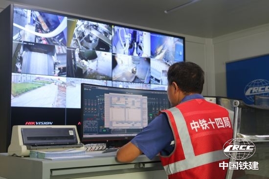 機器轟鳴,混凝土攪拌罐在程序指令下平穩運轉……近日,在中鐵十四局設備管理中心廣云拌和站集控中心的大屏幕上,生產數據、設備狀態、環保指標實時跳動,作業隊隊長李士珂正調控著屏幕上的生產曲線。